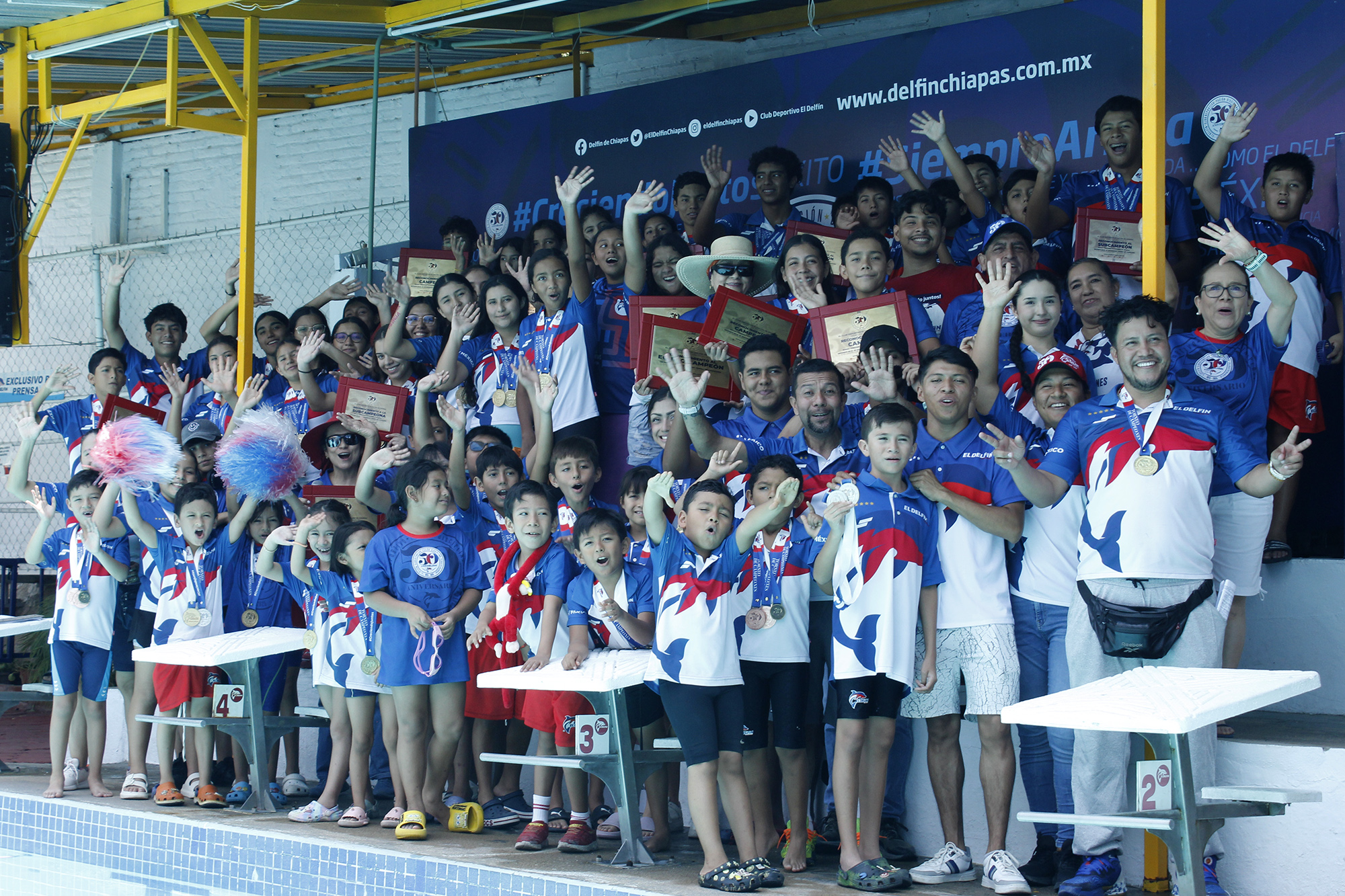 Con una cosecha de 2 mil 819.5 unidades, El Delfín de Chiapas se proclamó monarca absoluto del Torneo de Campeones, realizado este fin de semana en el marco de su 50° Aniversario de fundación. El equipo liderado por la histórica entrenadora, Amanda Moguel Rodríguez, desplegó una gran actuación en la alberca del Centro de Entrenamiento,…