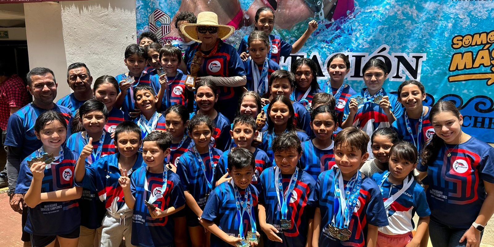 La selección infantil de El Delfín de Chiapas conquistó la 39° Copa Maya de Natación 2024, celebrada el pasado fin de semana en la alberca 20 de noviembre, en San Francisco Campeche.