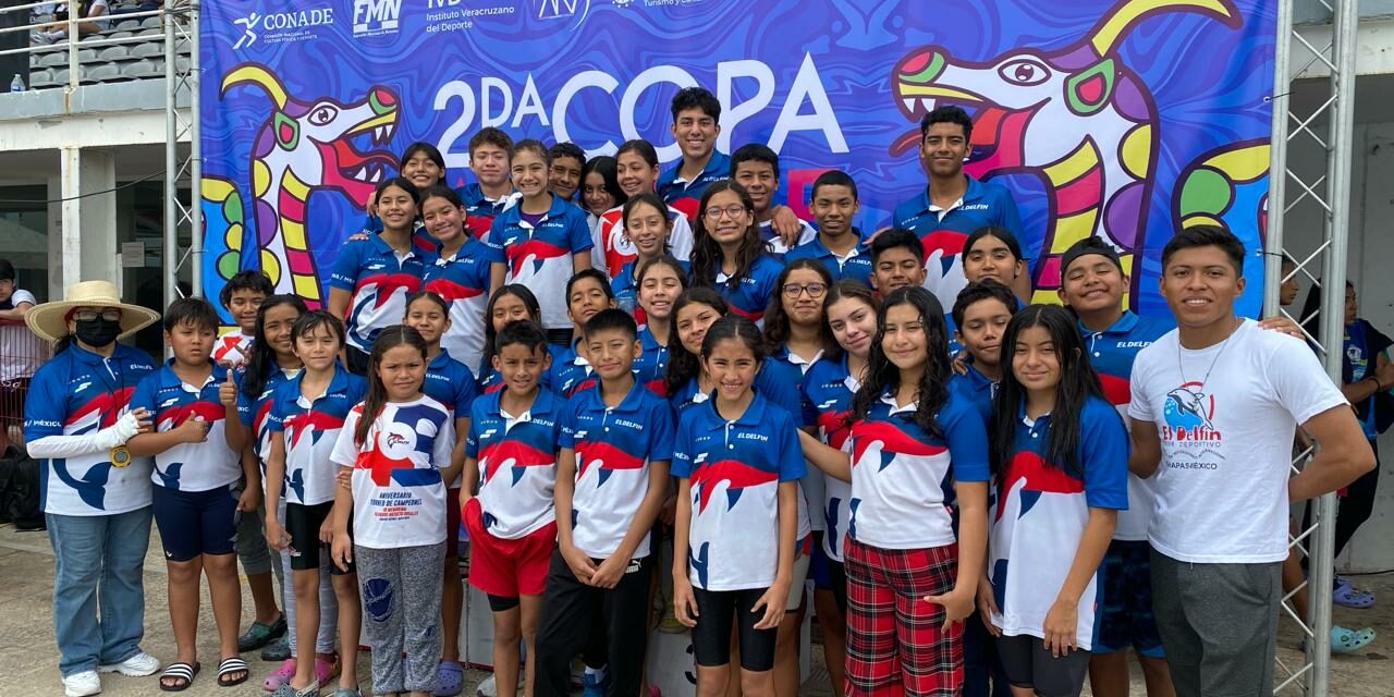 La selección infantil y juvenil de El Delfín de Chiapas cumplió con una excelente participación en la 2ª Copa Alebrijes de Natación de Curso Largo 2024, en la cual cosechó 19 oros, 13 platas y 16 bronces, colocándose además en el Top-5 general, como el cuarto club mejor clasificado de entre los 42 que se dieron cita al Centro Acuático Leyes de Reforma, en el Puerto de Veracruz.