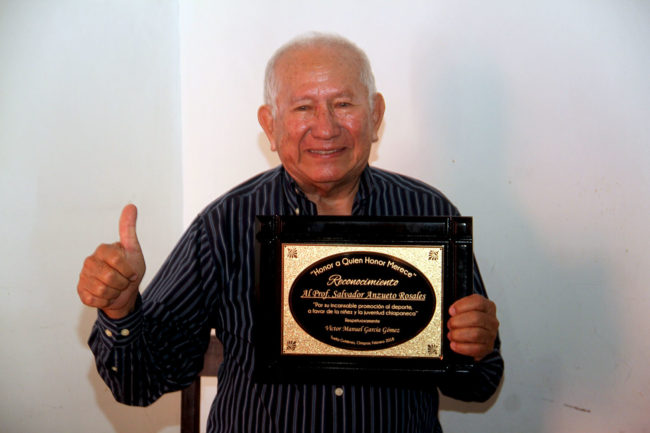 Dentro de una ceremonia sencilla pero llena de mucho afecto, se dio este martes por la mañana el reconocimiento en vida a uno de los promotores deportivos más longevos en el estado de Chiapas, como es el Profr. Salvador Anzueto Rosales, que fue homenajeado por su trayectoria de más de 60 años en la actividad…